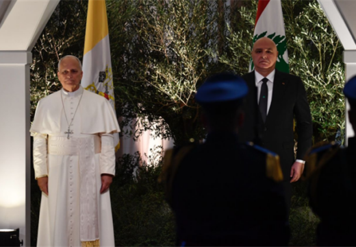 بالفيديو – دخول البابا لاوون إلى منصة الإستقبال الرسمية على وقع موسيقى الجيش اللبناني